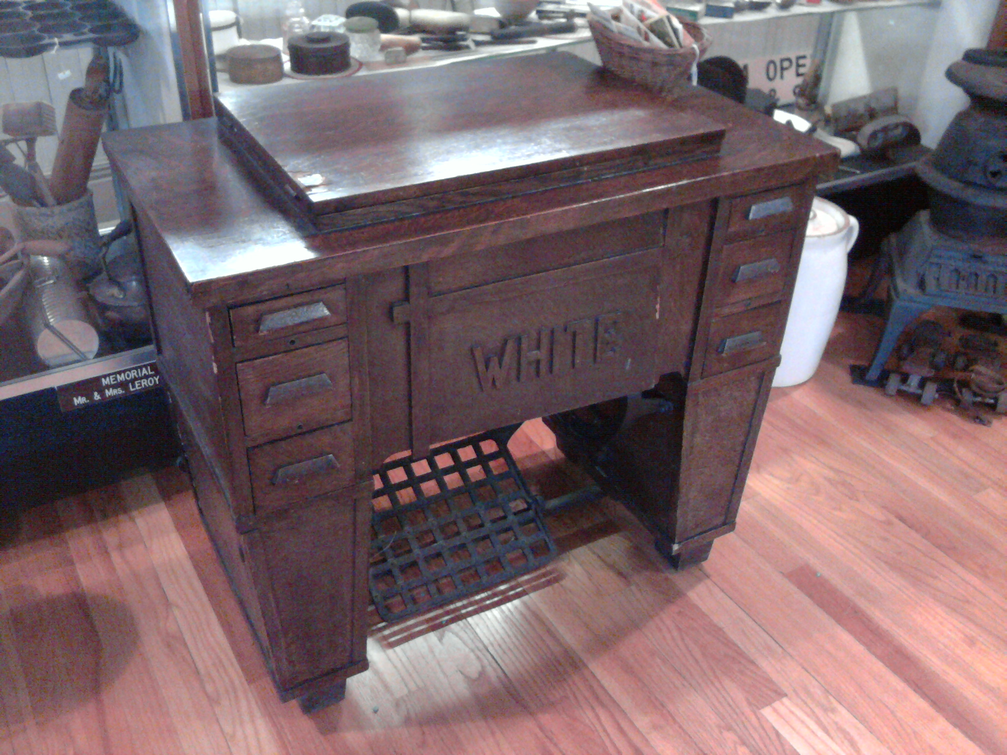 very cool! my mom has an old sewing machine with a treadle, though it is a singer. I think it still works, too – oh, Chris says it needs a belt, too, LOL!